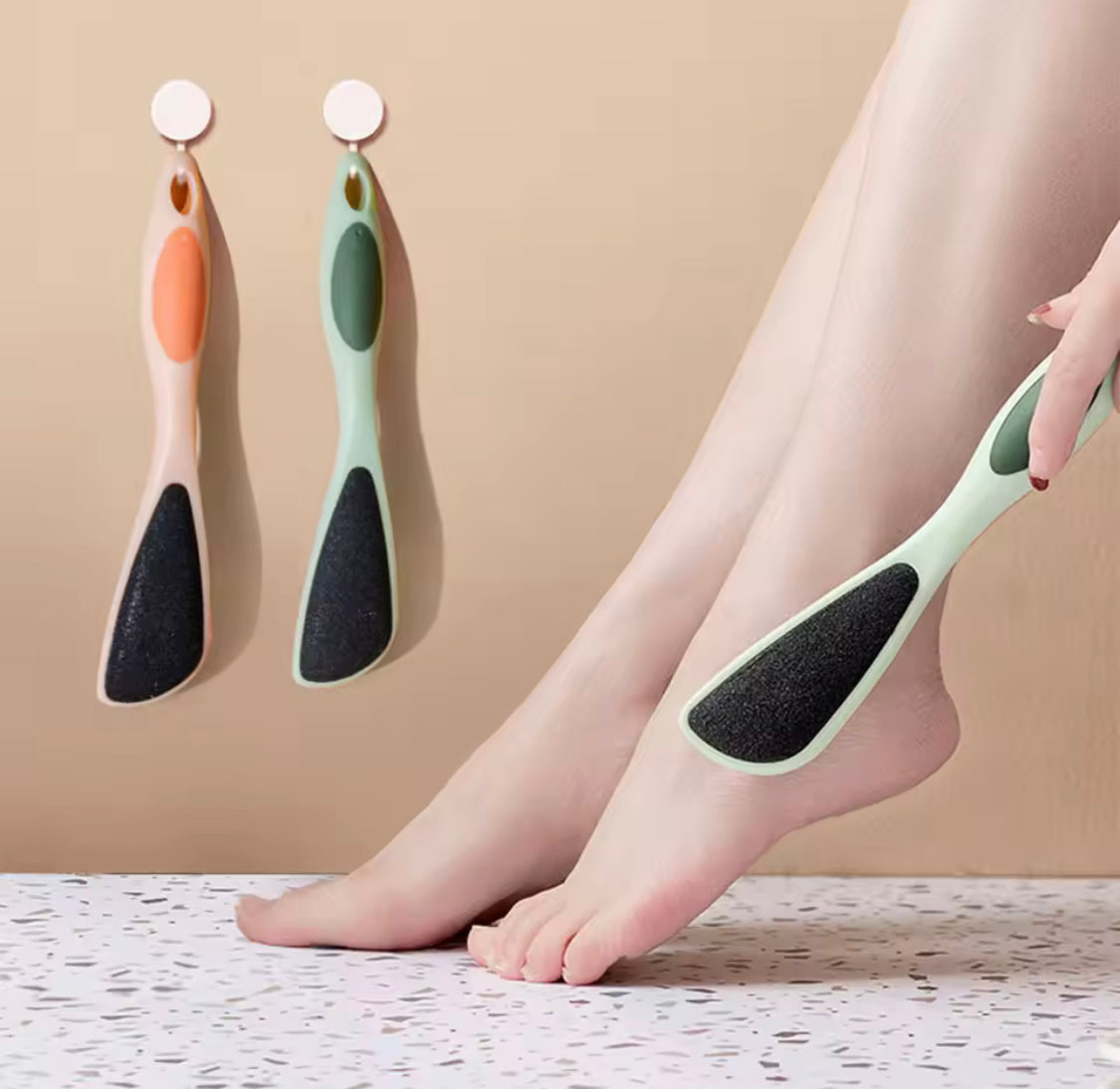 This double sided foot file callus remover is a durable and efficient pedicure tool designed to remove hard, dead skin and calluses from your feet with ease. Featuring a dual-sided design—one coarse side for tackling tough calluses and a finer side for smoothing skin—it ensures a complete foot care experience. The long, anti-slip handle provides a comfortable and secure grip, making it easy to reach all areas of the foot. Portable and easy to clean, this foot file is ideal for both at-home and travel use, helping to maintain soft, smooth feet effortlessly.