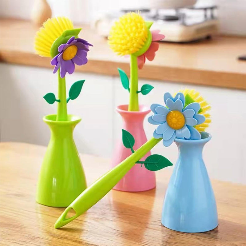 - Brushing pots and pans, dishes, cutlery, sinks, floors, shoes, etc. The soft rubber sunflower design and chic shape make your life full of the beautiful atmosphere of flowers and make life interesting.